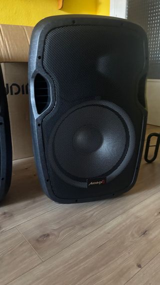 Alquiler de Altavoces profesionales audibax en color negro, ideal para sonorizar eventos. Incluye cableado, tripodes y microfono. Para sonorizar tu evento, pequeña fiesta o conferencias. Conexion bluetooth , RCA , Jack mini auxiliar y XLR . - Diseño robusto y compacto. - Rejilla protectora metálica. Alquiler por dia.