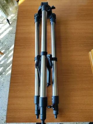 Trípode para telescopio, completamente nuevo y sin usar. - Material: Aluminio y plástico. - Color: Plateado y negro. - Plegable y ajustable en altura. Está nuevo sin usar, lo compré para mí nieto y ya tenía otro.