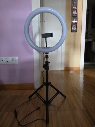 ⚠️ LEER ATENTAMENTE: Solo le funciona la luz cálida. ⚠️ 🏷️ Marca: KSIX 📝 Descripción: Aro de luz KSIX con trípode regulable hasta 1,60m, ideal para fotografía, selfies y TikTok. Cuenta con 3 temperaturas y 10 niveles de brillo para una iluminación profesional y adaptable. LPNWE292549956 - A.010 🔑 Palabras clave: aro de luz, trípode regulable, iluminación led, selfie, fotografía 🔗 Relacionadas: ring light, iluminación, video, grabación, móvil, soporte móvil, temperatura luz, brillo ajustable, contenido digital, streaming, redes sociales, autofoto 📦 Aro luz regulable trípode móvil