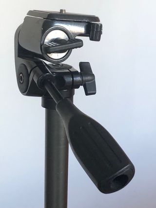 Se debe de venir a recoger a la oficina que se encuentra en Paseo de la Castellana. Trípode ligero y ajustable, ideal para cámaras o móviles. No tiene zapata - Material: Aluminio y plástico. - Altura regulable. - Cabezal giratorio.