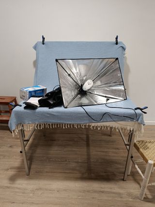 Vendo kit de iluminación profesional tipo Softbox de 50x70 cm en perfecto estado, muy poco uso. Ideal para fotografía, producto, vídeos de YouTube o TikTok. Softbox (50x70 cm): Interior reflectante de alta calidad para una luz suave y natural Bombilla de 135W (5500K): Luz blanca pura (luz día), bajo consumo y gran potencia (equivale a 1124W halógenos). Casquillo cerámico resistente al calor Trípode regulable: Alcanza hasta los 2 metros de altura. Muy estable y ligero (aluminio) Bolsa de transporte: Para guardarlo y llevarlo todo cómodamente Estado: 9/10. Funciona perfectamente.. Me costó 43€ lo vendo por falta de espacio y uso.