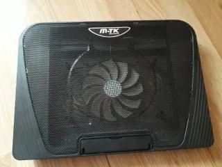 Base refrigeradora para portátil con ventilador. - Diseño en malla metálica negra. - Ventilador central. - Soporte integrado en la parte inferior.