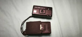 Cámara compacta Kodak Pocket A-1 en color negro. Incluye su funda original. - Diseño compacto y ligero. - Funda de cuero con cierre metálico.
