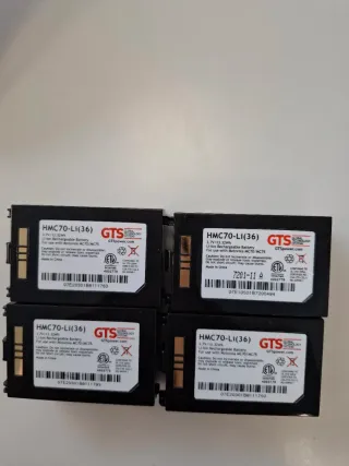 Conjunto de cuatro baterías recargables de ion-litio GTS. - Modelo: HMC70-Li(36) - Voltaje: 3.7V - Capacidad: 13.32Wh - Compatibles con Motorola MC70/MC75 - Fabricadas en China