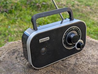 Radio portátil de la marca Roadstar con un diseño clásico y funcional. - Acabado en color negro con detalles plateados. - Asa superior para facilitar su transporte. - Funciona a corriente 220v o a pilas