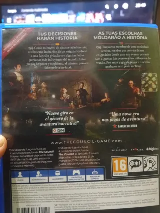 Juego para PlayStation 4, The Council Complete Edition. El disco está perfecto - Incluye los 5 episodios. - Requiere descarga online. - Requiere transferencia online.no se admiten devoluciones por evitar devoluciones fraudulentas leer mis valoraciones vendedor desde el 2016,solo 3€