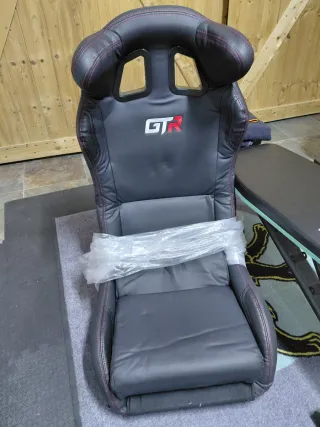 Asiento Pro Racer en color negro con costuras rojas. Se vende solo asiento sin los anclajes. - Diseño deportivo. - Acabado en piel sintética. - Logo GTR bordado en blanco y rojo.