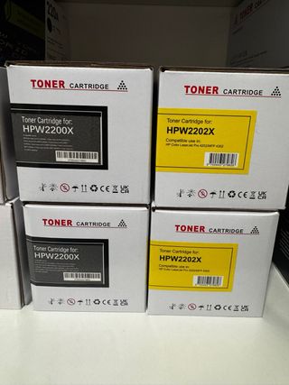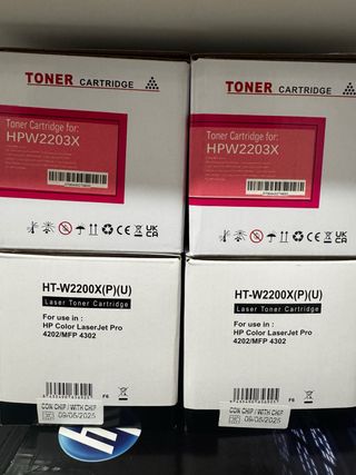 Dos cartuchos de tóner HP, modelo HPW2203X y HT-W2200X(P)(U). - Compatibles con HP Color LaserJet Pro 4202/MFP 4302. - Con chip.