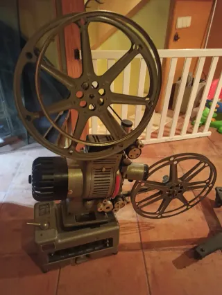 Proyector de películas vintage, un objeto decorativo o para coleccionistas. - Diseño clásico en tonos dorados y grises. - Ruedas para el carrete de película. Negociable