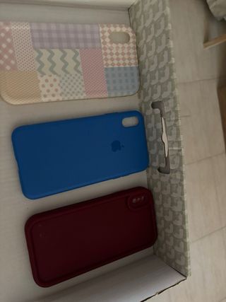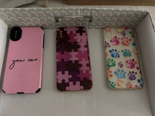 Fundas para iPhone X Max con diseños variados. - Funda rosa con texto you can.. - Funda con estampado de piezas de puzzle en tonos rosas y morados. - Funda transparente con huellas de patas de animales en colores. - También las hay de un solo color. - Precio 0,75€/ud. Si se llevan mas de una se hará mejor precio.