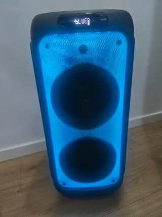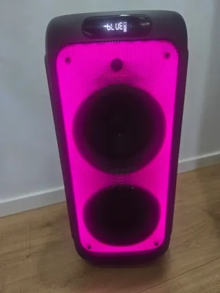 Altavoz portátil Party22, tiene 500w de potencia. Parrilla de luces LED con diferentes modalidades. Incluye micrófono inalámbrico y mando a distancia. Todo en su caja original. También hago envíos por Wallapop.