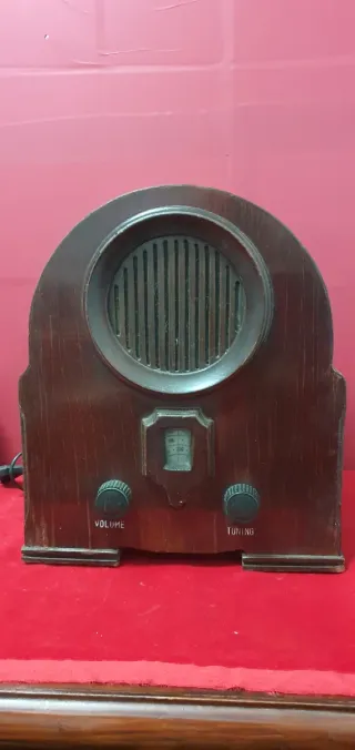 Réplica de radio antigua AM/FM marca ITC modelo de 1917. (No es de válvulas) Diseño nostálgico tipo "tombstone" con gabinete de madera. Cuenta con perillas físicas para control de volumen y sintonización. Funcionando perfectamente,se aprecian desgastes sin apenas importancia. Alto:32cm. Ancho:27,5cm. Fondo:18cm.