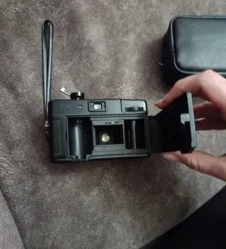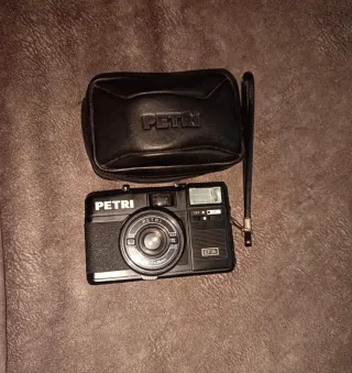 Cámara de fotos analógica Petri EF35, ideal para coleccionistas o amantes de la fotografía vintage. Incluye su funda original. - Cámara de carrete. - Color negro. - Funda de cuero negra.