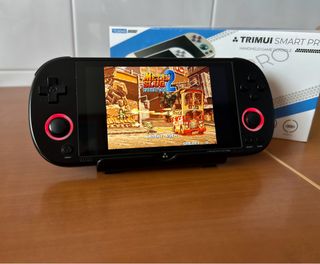 Consola de videojuegos portátil Trimui Smart Pro en color negro. Con cristal templado en la pantalla Incluye una tarjeta de memoria Samsung EVO de 256GB con cientos de los mejores juegos(NES,SNES,GB,GBA,MD,MS,DC,N64,PSX,NEOGEO,MAME,etc etc) Como nueva En su caja con todos sus accesorios - Pantalla de alta resolución. - Controles ergonómicos. - Diseño compacto y ligero.