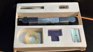 Oportunidad para coleccionistas.Reparación de cintas vídeo (VHS/Betamax) de la mítica marca PANTRA, para cinta de 1/2 pulgada. Es una pieza difícil de encontrar en este estado, conservando su caja original (desgastes normales del tiempo) y todos sus accesorios de fábrica.En perfecto estado de funcionamiento.Cuchilla original Mozart para un corte preciso, ideal para exposición o vitrina la cinta adhesiva original, debido a los años es probable que el adhesivo esté seco,seincluye como valor de coleccionismo.Un artículo ideal tanto para quien quiera recuperar sus viejas cintas como para decorar un estudio con un toque técnico vintage