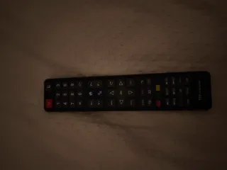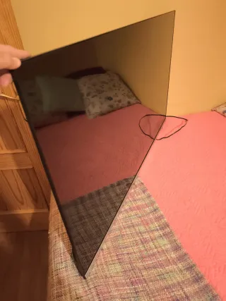 Pantalla de televisión negra. No funciona. Funcionaba perfectamente hasta que un día no encendió. Nada averiado que yo sepa. Ningún golpe. Sólo que no enciende. Perfecto para reparar o piezas. Mando aparte. Sin patas, pues estaba colgada en la pared - Marco delgado. - Diseño moderno.