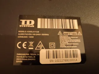 TV negra 50" TDSystems MODELO: K50DLX11US