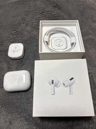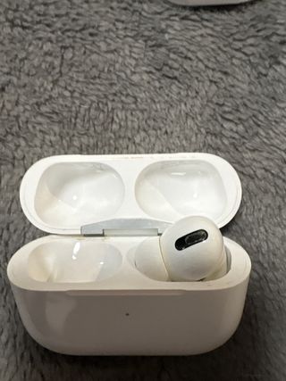 Auricular derecho de la marca Apple en color blanco. AirPods Pro originales - Diseño ergonómico. - Acabado liso. Con taponcillos de oreja sin estrenar Con cable cargador sin usar