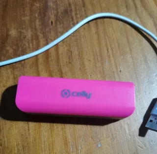 Este cargador portátil Celly es compacto y fácil de llevar. - Color rosa vibrante. - Diseño cilíndrico.