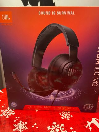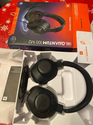 Auriculares JBL Quantum 100 M2 en color negro y multicolor. Diseñados para una experiencia de audio inmersiva. - Micrófono direccional desmontable. - Diseño ligero y cómodo. - Compatible con PC, Mac, Xbox, PlayStation y Nintendo Switch.