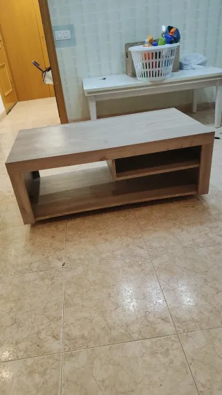 Mesa de TV con un diseño moderno y funcional, ideal para tu salón. - Acabado en madera clara. - Dos compartimentos abiertos para almacenamiento.
