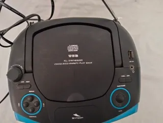 Equipo de música portátil con altavoces integrados. Sytech modelo SY-9956AZ - Diseño moderno en negro con detalles en azul. - Antena extensible para mejor recepción de radio. Equipo de música minicomponente minicadenas radio radiocasete DVD CD MP3 USB vídeo