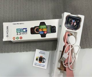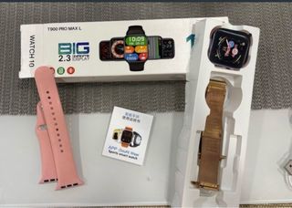 Reloj inteligente T900 Pro Max L con pantalla grande. - Pantalla de 2.3 pulgadas. - Incluye dos correas: una rosa y una dorada tipo milanesa. - Manual de usuario incluido. -Cargador incluido. escucho ofertas razonables