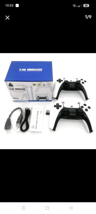 Consola de videojuegos retro con mandos. - Incluye dos mandos inalámbricos. - Diseño compacto y portátil. - Ideal para juegos de arcade.