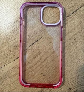 Funda protectora para iPhone 13. - Diseño transparente con borde rosa. - Material resistente. -Bordes reforzados.