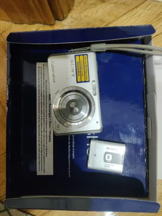 Cámara digital Sony Cyber-shot DSC-W180 en color plata. Compacta y fácil de usar. - Sensor de 10.1 Megapíxeles. - Lente Carl Zeiss. - Estabilizador de imagen SteadyShot. - Función Smile Shutter. Se entrega en su caja original con cargador y batería en perfecto estado.
