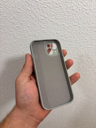 Funda protectora para iPhone 15 en color gris. Diseñada con un acabado suave al tacto. - Compatible con MagSafe. - Material de silicona.