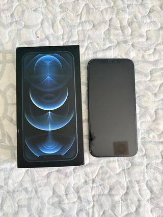 Teléfono móvil iPhone 12 Pro Max en color azul. Incluye caja original. - Capacidad de almacenamiento de 256 GB. - estado como nuevo -bateria reemplazada original -bateria 100% -cable usb -2 protectores de pantalla nuevos -3 fundas en perfecto estado - protector de pantalla Movil muy bien cuidado siempre con funda y protector de pantalla