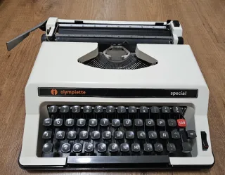 Máquina de escribir Olympia special en color blanco y negro. Un clásico para escribir a mano. - Diseño retro. - Teclado QWERTY con Ñ.