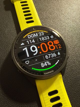 Reloj deportivo Garmin Forerunner 965 con correa de silicona en llamativo color amarillo. Esta practicamente nuevo, muy poco uso. Lo vendo por pasar a la gama fenix, este esta mas enfocado a triatlón o natacion deportes que no practico. Tiene una pantalla amoled que se ve espectacular. Si necesitan mas información solo tienen que pedirla. Un saludo