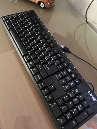 Teclado de ordenador con conexión USB. - Diseño elegante en color negro. - Teclas cómodas para escribir.