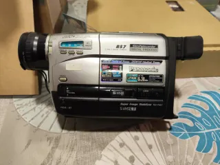 Videocámara Panasonic S-VHS-C. - Zoom óptico 20x. - Zoom digital 220x. - Estabilizador de imagen. - Batería de litio de larga duración (hasta 8.30 min). Procedente de stock de tienda. En su caja. Incluye todos los accesorios excepto película S-VHS. Nunca usada.
