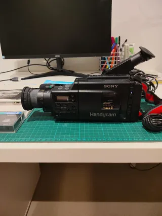 Videocámara Sony Handycam en formato Hi8. Ideal para revivir tus recuerdos. - Funciona correctamente - Incluye correa de transporte. - Bolsa de transporte a juego. - dos baterías en perfecto estado - cables para TV - cinta stereo