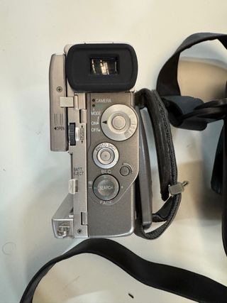 Vendo cámara de vídeo JVC GR-DX25E MiniDV La cámara enciende y carga la cinta correctamente, el mecanismo de cinta funciona bien, pero la imagen se ve borrosa, como si la óptica tuviera un problema interno o estuviera dañada El enfoque no llega a verse nítido en ningún modo No he intentado repararla ni abrirla Se vende tal cual, ideal para quien sepa arreglarla, para piezas o para proyectos DIY / coleccionismo Estéticamente en buen estado para su edad, con marcas normales de uso Incluye correa original No garantizo funcionamiento completo Artículo vendido para reparar o - Zoom óptico 16x. - Zoom digital 700x. - Función NightScope.