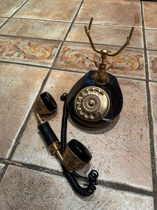 Teléfono antiguo de disco. Mármol y latón