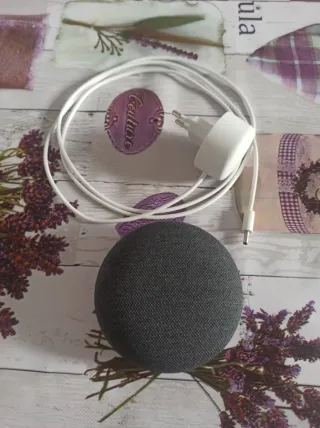Google Nest Mini color negro. Funciona perfectamente. Micrófonos y sonido correctos. Incluye cable de alimentación. Restablecido de fábrica, listo para configurar. Con su propia caja incluida.