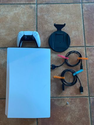 Vendo PS5 usada, con sus horas de uso normales, siempre bien cuidada y funcionando perfectamente. Consola potente con gráficos 4K, SSD ultrarrápido y gran rendimiento. Consumo aprox. 200 W jugando (máx. 350 W). 🔌 Incluye: • Mando DualSense • Cable de alimentación • Cable HDMI • Cable USB • Soporte original Sin golpes ni fallos, nunca reparada. Lista para usar. Se puede probar. Precio no negociable