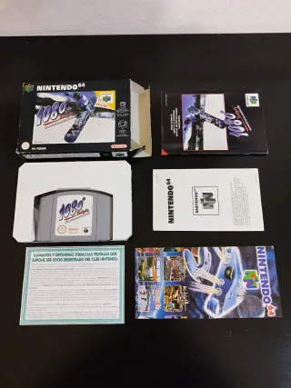 Videojuego clásico de Nintendo 64, 1080 Snowboarding. - Versión PAL. - Incluye: cartucho, caja, manual, inserts y funda de plástico rígido PET. - Juego completo CIB. Opción de intercambiar por juegos retro de PC o PS1