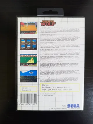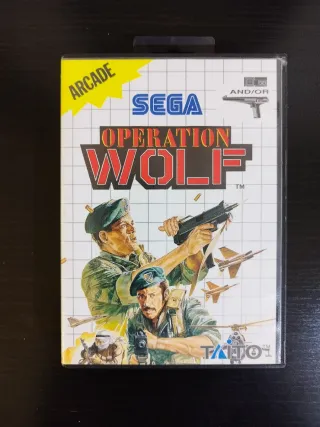 Juego de disparos para Master System. - Portada con arte clásico de Operation Wolf. - Incluye el cartucho del juego, manual, carátula y caja - Ideal para coleccionistas - Cartucho de juego. - Carcasa de plástico negra. - Manual como nuevo. - Carátula perfecta. Intercambio por juegoes de PC antiguos, N64 o de PS1