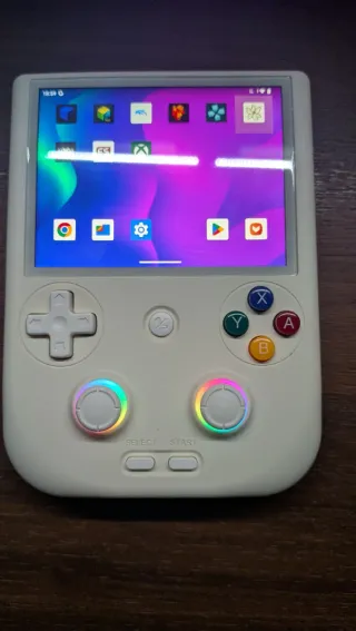 Consola portátil Anbernic RG406V en color blanco. Prácticamente sin uso, funcionamiento fluido hasta ps2. Consola android. Se incluye sd de 128gb de buena calidad. Se entrega con juegos o sin ellos.