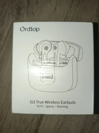 Auriculares inalámbricos de la marca Ordtop en color blanco. - Modelo I13 True Wireless Earbuds. - Diseño Hi-Fi. - Ideales para deportes y running.
