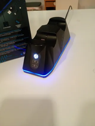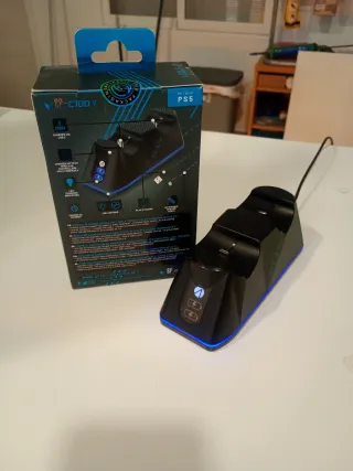Base de carga doble para mandos de PS5. - Carga hasta 2 mandos simultáneamente. - Conexión vía USB-C. - Indicadores LED de carga. - Incluye cable USB trenzado de 2m. - varias unidades disponibles, en negro y blanco, precio por unidad.