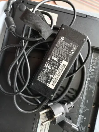 Cargador de corriente HP de 65W. - Conector redondo. - Cable de alimentación incluido.