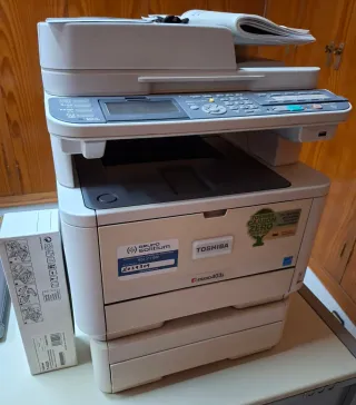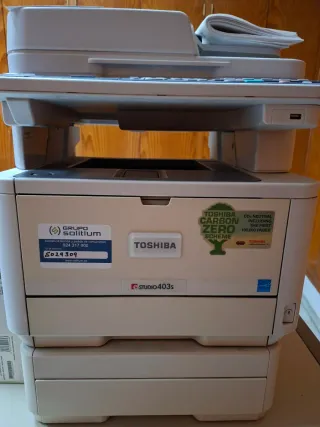Impresora multifunción Toshiba e-STUDIO403S. En perfecto estado funcional se regala tóner nuevo. - Con cable de alimentación, instrucciones... - Funciones de impresión, copia y escaneo. - Etiqueta de 'TOSHIBA CARBON ZERO SCHEME'