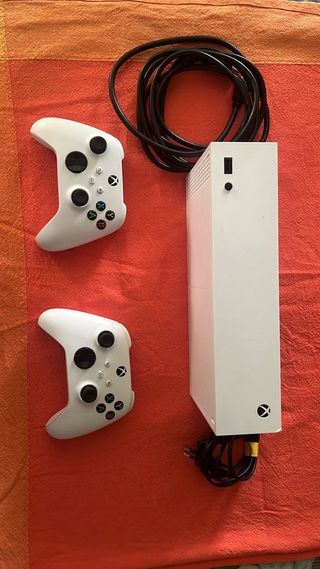 Consola Xbox Series S 512gb, en color blanco, ideal para jugar, esta nueva y funciona super bien, tiene un pequeño golpe en la esquina que no afecta a nada. - Incluye dos mandos inalámbricos. - Cable de alimentación. - Cable HDMI.