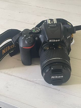 Cámara réflex digital Nikon D5600 en color negro. - Sensor CMOS DX de 24.2 MP. - Pantalla táctil abatible. - Conectividad Wi-Fi y Bluetooth. - Objetivo AF-P DX NIKKOR 18-55mm f/3.5-5.6G VR - Cargador y batería - 2 SD 32GB y USB conectividad - Caja original y accesorios originales - Se regala mochila para introducir equipo Muy poco uso está prácticamente nueva. Ideal para iniciarse en la fotografía con todo lo necesario. 3094 Disparos